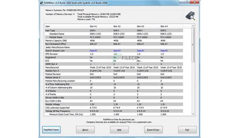 - Comprehensive reporting on memory specifications.